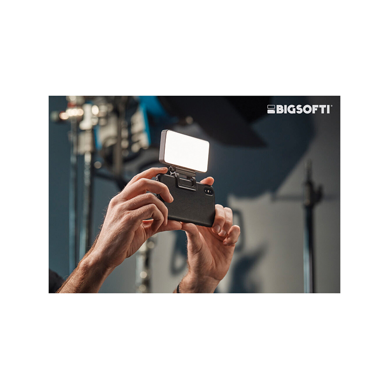 With a bright yet soft output, the BIGSOFTI ONE Ultralightweight Portable LED Soft Light brightens the subject of your video, whether you are shooting with your phone, from a DSLR/mirrorless camera, or even your laptop’s webcam. Lightweight and portable, mounting the BIGSOFTI ONE on your phone or camera won’t limit where you can take it, and the light’s stepped color temperature settings of 2800K, 3800K, and 5000K means you can use it indoors and out to add natural-looking brightness to your video.