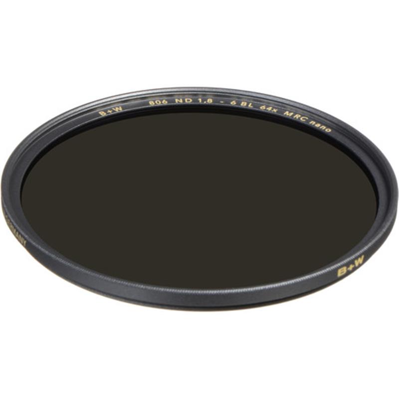 The B+W 46mm XS-Pro MRC-Nano 806 ND 1.8 Filter (6-Stop) is a neutral density filter with a 64x filter factor that provides a 6-stop exposure reduction. Its 1.8 density creates a darkening of the entire image, allowing you to photograph with a wider aperture or slower shutter speed than normally required. By increasing your aperture or slowing your exposure time, you can control depth of field and convey movement more easily. Neutral density filters do not affect the coloration of the image and are ideal for pairing with other filters.To prevent internal ghosting and reflections, each glass surface includes multiple layers of anti-reflection coating. This Multi-Resistant Coating (MRC) also offers greater protection to the filter substrate and helps it to stay clean for longer than with uncoated filters. The Nano coating associated with XS-Pro filters provides an additional eighth layer over the MRC, resulting in an improved beading effect when in contact with water for greater cleaning efficiency.