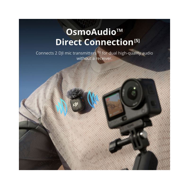 Three built-in omnidirectional microphones record accurate and clear sound. The DJI OsmoAudio ecosystem supports direct connection to two DJI microphone transmitters, capturing high-quality audio without a receiver. This easy-to-mount audio solution features 32-bit float recording. The camera can connect to other external microphones using an optional USB-C to 3.5mm cable.