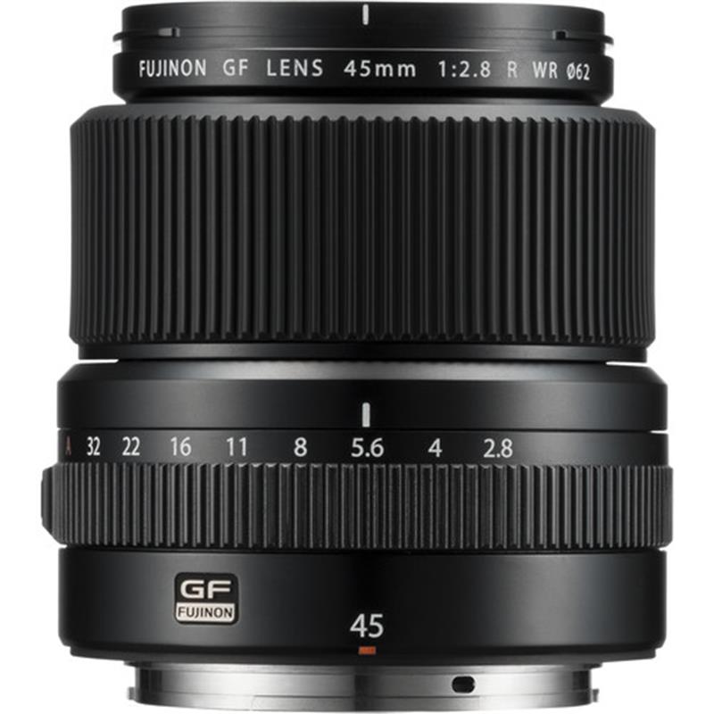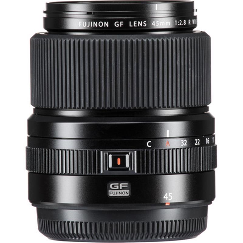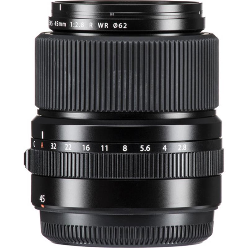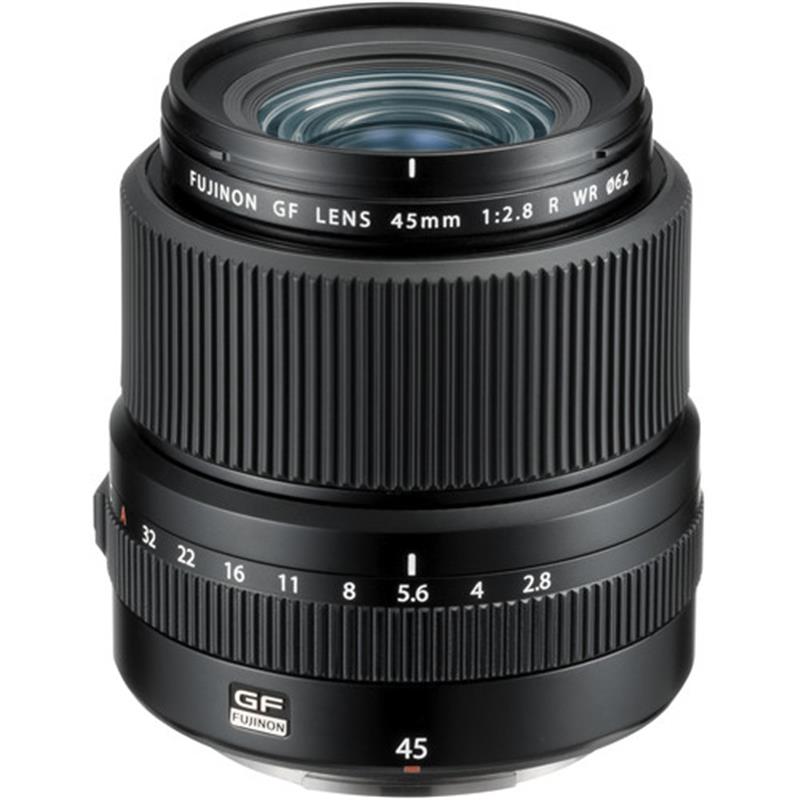 Offering a versatile wide-angle perspective, the GF 45mm f/2.8 R WR from FUJIFILM is a 36mm equivalent lens for the G-mount GFX camera system. With a slightly wider-than-normal field of view, this lens is ideal for everyday shooting and its f/2.8 maximum aperture suits working in difficult lighting conditions. Its optical design incorporates one aspherical element and two extra-low dispersion elements to reduce both spherical and chromatic aberrations for improved sharpness and clarity. A Nano GI coating has also been applied to individual elements to suppress lens flare and ghosting for greater contrast and color accuracy. Contributing to its flexibility, the lens also features a dust-, freeze-, and weather-resistant construction for use in inclement conditions. Additionally, a manual aperture ring is featured for intuitive, tactile adjustment over exposure settings, and a Command position can also be set for camera-based control over the aperture.
