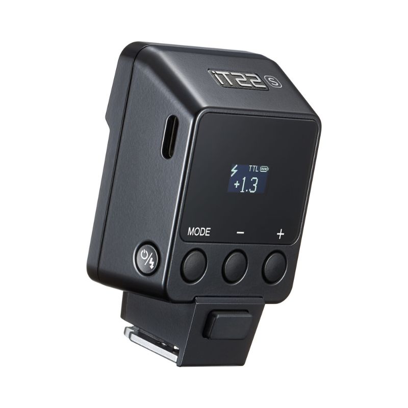 After charging with the flash’s included USB-C cable, the iT22 S built-in lithium battery provides up to 700 full-power flashes with a 1.5 sec recycling time. The battery charges in approximately one hour.