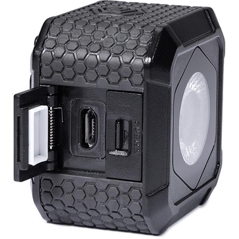 The Lume Cube AIR operates on a built-in lithium-polymer battery and runs for 2.5 hours at half brightness, and 30-45 minutes at full brightness. The battery is rechargeable via a micro-USB port on the side. A white diffuser and warming diffuser are included for achieving different tones of light.