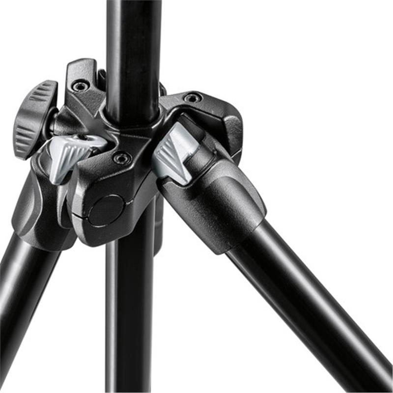 The Manfrotto MK290LTA3-3W 290 Light Aluminum Tripod with 3-Way Pan/Tilt Head can hold up to 8.8 lb and extends from 16.3″ to 56.7″ high. It weighs 4.1 lb and folds down to 21.9″ for travel. The 3-section legs have two angle positions, and they employ tension-adjustable leg locks to adjust the tripods height. A rubber grip on one of the legs adds comfort when carrying the tripod.
