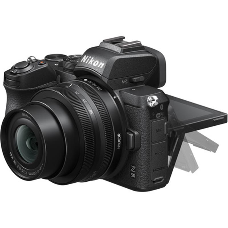 Included with the camera body is the NIKKOR Z DX 16-50mm f/3.5-6.3 VR lens; an especially compact 24-75mm-equivalent zoom covering wide-angle to portrait length perspectives. Its optical design incorporates aspherical and extra-low dispersion elements, which help to reduce a variety of aberrations for sharper, clearer image quality throughout the zoom range. The lenss flexible focal length range is complemented by Vibration Reduction image stabilization, which minimizes the appearance of camera shake by up to 4.5 stops for sharper handheld shooting. A stepping motor provides quick, quiet, and precise autofocus performance along with full-time manual focus override to suit both stills and video applications.