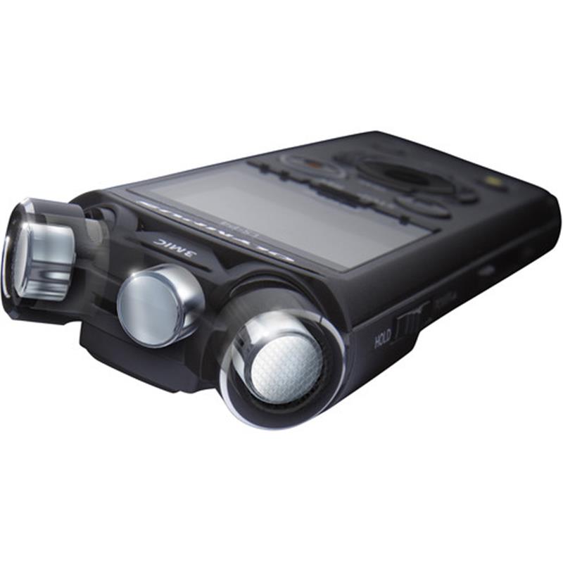 The LS-P4 offers three microphones for a natural sound that mimics the function of human ears. It uses two directional microphones, while a third omnidirectional microphone can be engaged to record additional bass frequencies.