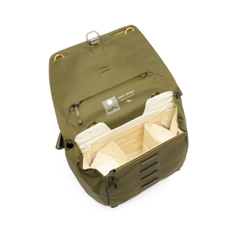 The 13L Everyday Messenger from Peak Design is a versatile messenger-style bag designed for photographers, multimedia creators, or anyone else whose carrying requirements can benefit from its compressible, size-adjustable design that minimizes bulk or can be expanded as needed. Multiple magnetic latches for its front flap allow this bag to vary from 11.7″ to 14.2″ in height, while inside the main compartment, its two dividers can be configured according to the specific equipment being carried. The dividers are foldable and can cradle curved surfaces such as the grip of a camera with an attached lens. During use, the foldable dividers enhance protection between those curved surfaces and adjacent items while minimizing the area between them for more efficient use of the main compartment’s space.