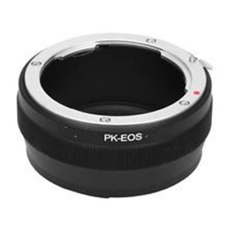 Lens mount adapter for Pentax K lenses to fit Canon EOS mount cameras.