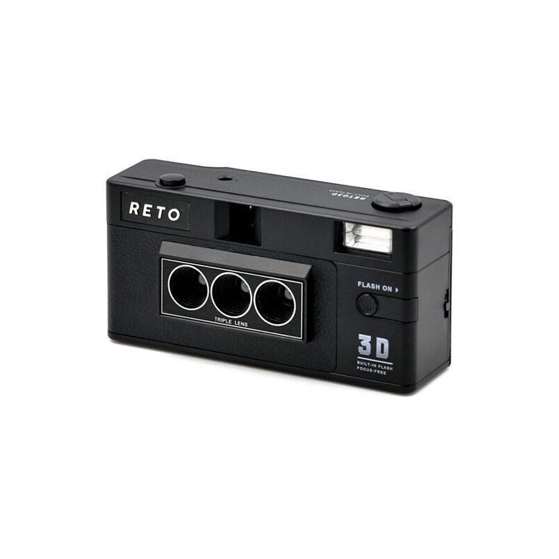 The Kodak Reto 3D is a 35mm film camera which captures an image from 3 different angles simultaneously, letting you create your own GIFs, or print hypnotizing lenticular 3D images. Affordable, small and lightweight, it presents an ideal entry point into both 3D and film photography as a whole, and comes with its own RETO 3D APP to make it a breeze to put your images together.