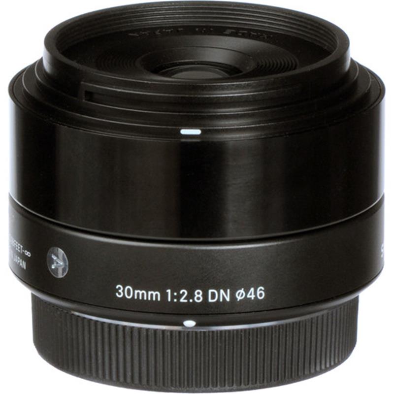 The black 30mm f/2.8 DN Lens for Sony E-mount Cameras from Sigma is standard length prime lens for Sony E-mount cameras. Its focal length is equivalent to a 45mm lens in the 35mm format and its minimum focus distance is 11.8″ (30 cm). Its f/2.8 maximum aperture is ideal for shallow depth of field imaging and allows it to maintain sharpness in low light situations. An inner focusing system means the lens does not extend when focusing and its newly developed linear autofocus motor is accurate and quiet. Sigma’s Super Multi-Layer Coating reduces flare and ghosting and provides sharp and high contrast images even at the maximum aperture, and with two glass molded aspherical elements including a double-sided aspherical element, aberrations are kept to a minimum. The result is accurate color definition and sharp imaging across the frame. A metal exterior provides durability and handsome design.