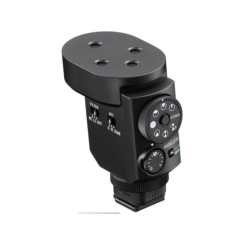 Using an onboard dial control, choose between eight different recording modes, including stereo, to suit different recording scenarios. Because the embedded condensers are laid out in a diamond orientation, the ECM-M1 can isolate the left, right, rear, or front audio sources and record separate channels simultaneously. Selectable modes include superdirectional, unidirectional, omnidirectional, superdirectional (rear), superdirectional (front and rear), super directional (front and rear separate), stereo, and ultra-directional.