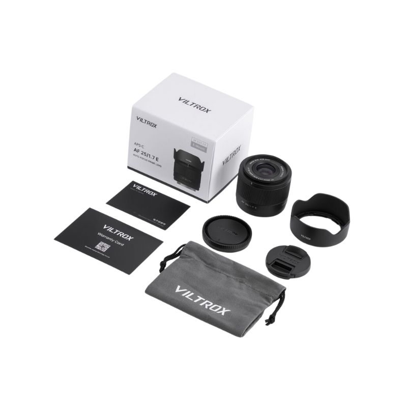 Capture everyday scenes from a broad perspective with the portable Viltrox AF 25mm f/1.7 Air E Lens for Sony E-mount cameras. Providing a full-frame equivalence of 37.5mm, this prime lens is suited for various subjects, including street scenes, nature, and still life. Driving this lens’s autofocusing is a fast and quiet leadscrew-type STM motor. Its bright f/1.7 maximum aperture is paired with 9 aperture blades to allow working in dimly lit settings and to create stunning bokeh that makes your subject stand out. Optical aberration and image distortion are reduced by the incorporated extra-low dispersion (ED), high-refractive (HR), and aspherical (ASPH) lens elements.