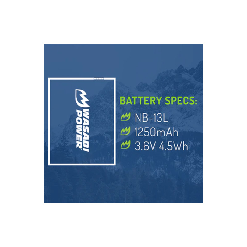 The Wasabi Power NB-13L battery replaces the Canon NB-13L battery 2-pack. This battery features 1250mAh which provides a longer run-time between charges. It is made with premium Japanese cells to provide maximum battery life and also comes with a 3-year manufacturer warranty.